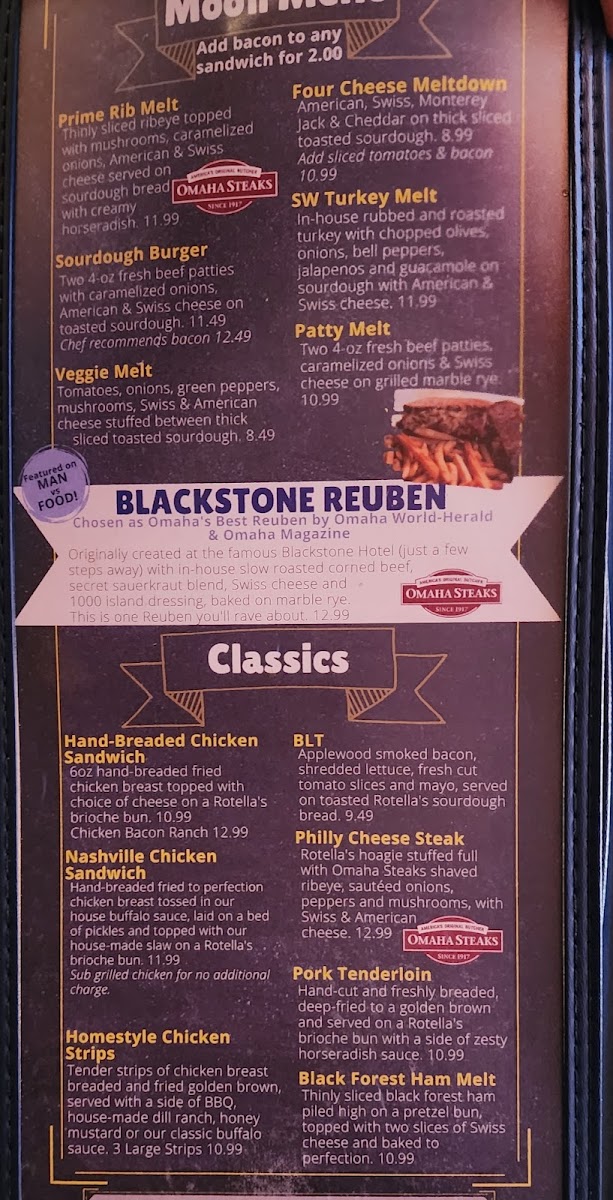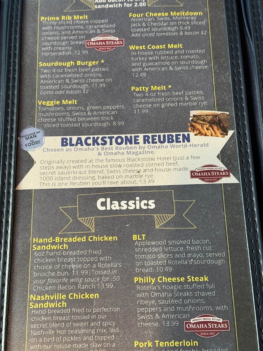 The star of the show here is undoubtedly the Blackstone Reuben. As one customer, Robert Green, vividly described, it’s “the best Reuben I've ever eaten.” Layered with in-house slow-roasted corned beef, a secret sauerkraut blend, and luscious Swiss cheese, all topped off with housemade 1000 island dressing and nestled between two slices of perfectly baked marble rye, this sandwich is more than just food; it's a celebration of Omaha's culinary heritage. Add to that the bustling bar scene where you can find a wonderful selection of cold beer, and you've got the perfect setting for a fantastic evening.